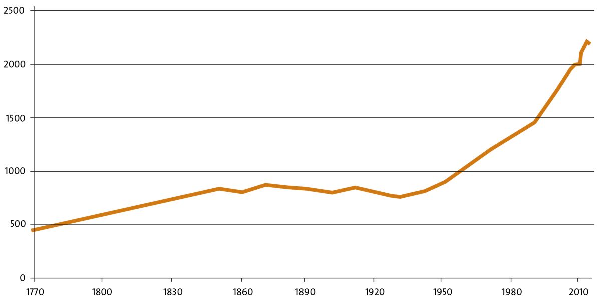 Noch vor den ersten offiziellen Volkszählungen 1803 auf kantonaler und 1837 auf eidgenössischer Ebene wurde die Bevölkerungszahl Eikens im Jahre 1768 erfasst und mit 451 Einwohnern beziffert. Bis zum 31. Dezember 2018 wuchs die Bevölkerung auf 2306 Einwohner an. Wie die untenstehende Grafik verdeutlicht, handelte es sich um keine stetige Zunahme. Während des 19. Jahrhunderts stieg die Bevölkerungszahl aufgrund verschiedener Einflüsse eher zaghaft an. An der Wende vom 19. zum 20. Jahrhundert nahm sie sogar leicht ab. Dieser Trend setzte sich, mit einer Ausnahme um 1910, bis in die 1930er-Jahre fort. Von 1870 bis 1930 verringerte sich die Eiker Bevölkerung um exakt 100 Bewohner von 867 auf 767 Einwohner. Trotz des Ausbruchs des Zweiten Weltkriegs erfolgte bis 1941 eine Zunahme um sechs Prozent auf 805 Eiker. Ab Mitte des 20. Jahrhunderts bis zur Jahrtausendwende legte Eiken erheblich zu. Bei einem Anwachsen der Bevölkerung von 892 auf 1918 Einwohner innert 50 Jahren erlebte die Gemeinde einen regelrechten Boom an neuen Bewohnern. Die Geburtenrate war dafür nicht alleine verantwortlich.
